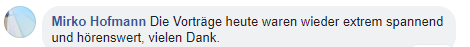 Du erhältst die Folien der Referenten, was extrem praktisch ist, falls du vergessen hast dir etwas aufzuschreiben, nicht so schnell mitgekommen bist oder die Folien zunächst schnell überfliegen möchtest, bevor du dir die Video-Aufzeichnung anschaust.
